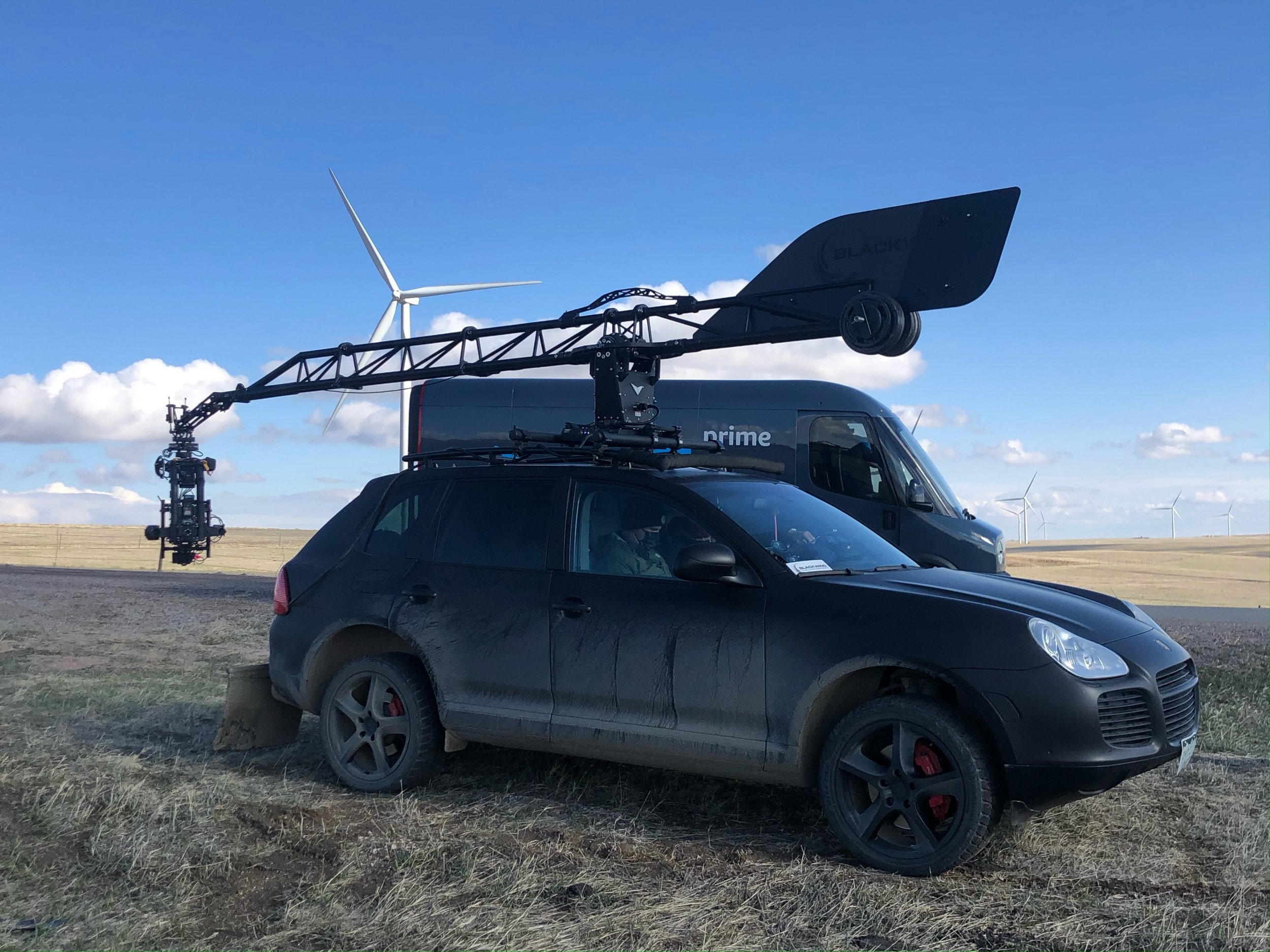Wrapped in anti-reflective matte black, with custom racks and multiple mount points, our Porsche Cayenne Turbo is optimized for precision camera movement across smooth terrain.